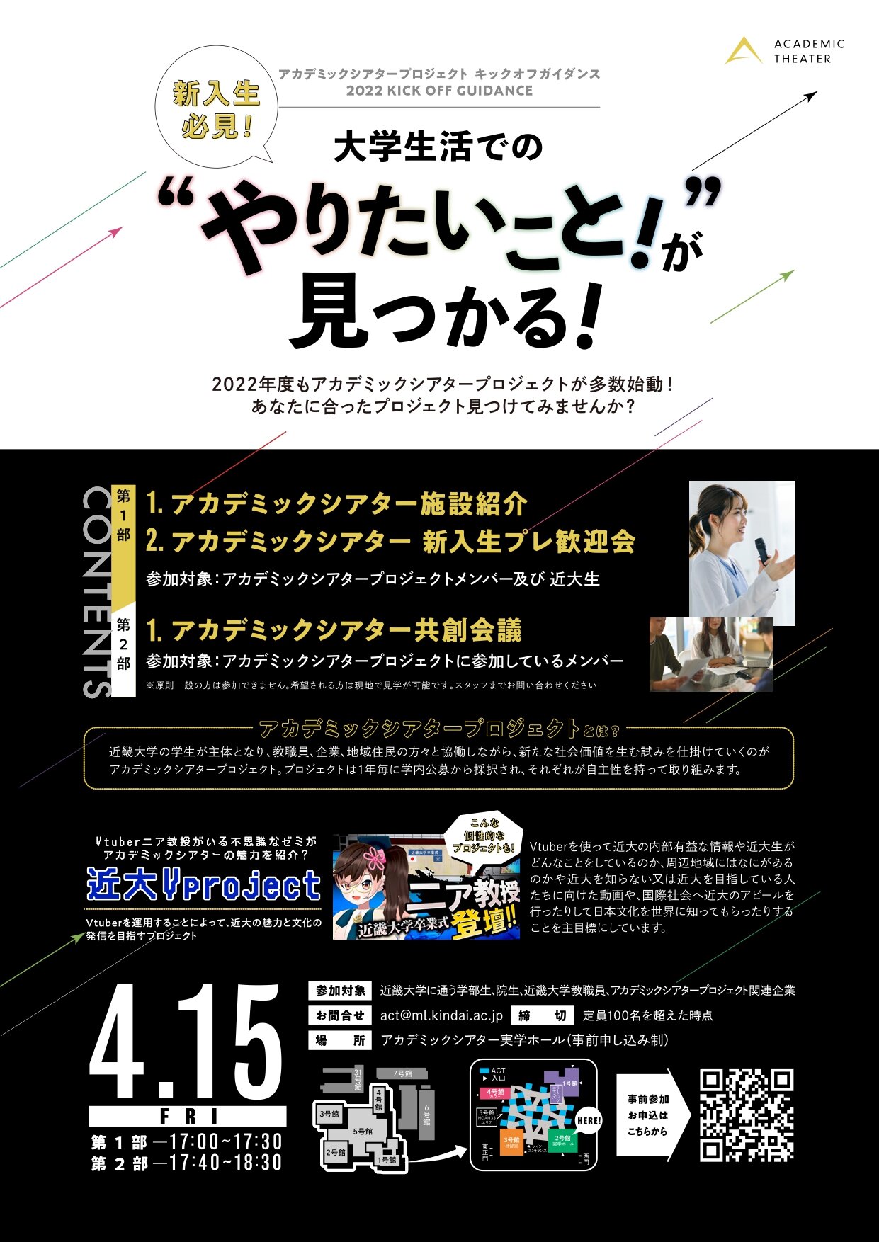 | 2022年04月15日~2022年04月15日 | 17:00~18:30 | 2号館 実学ホール |